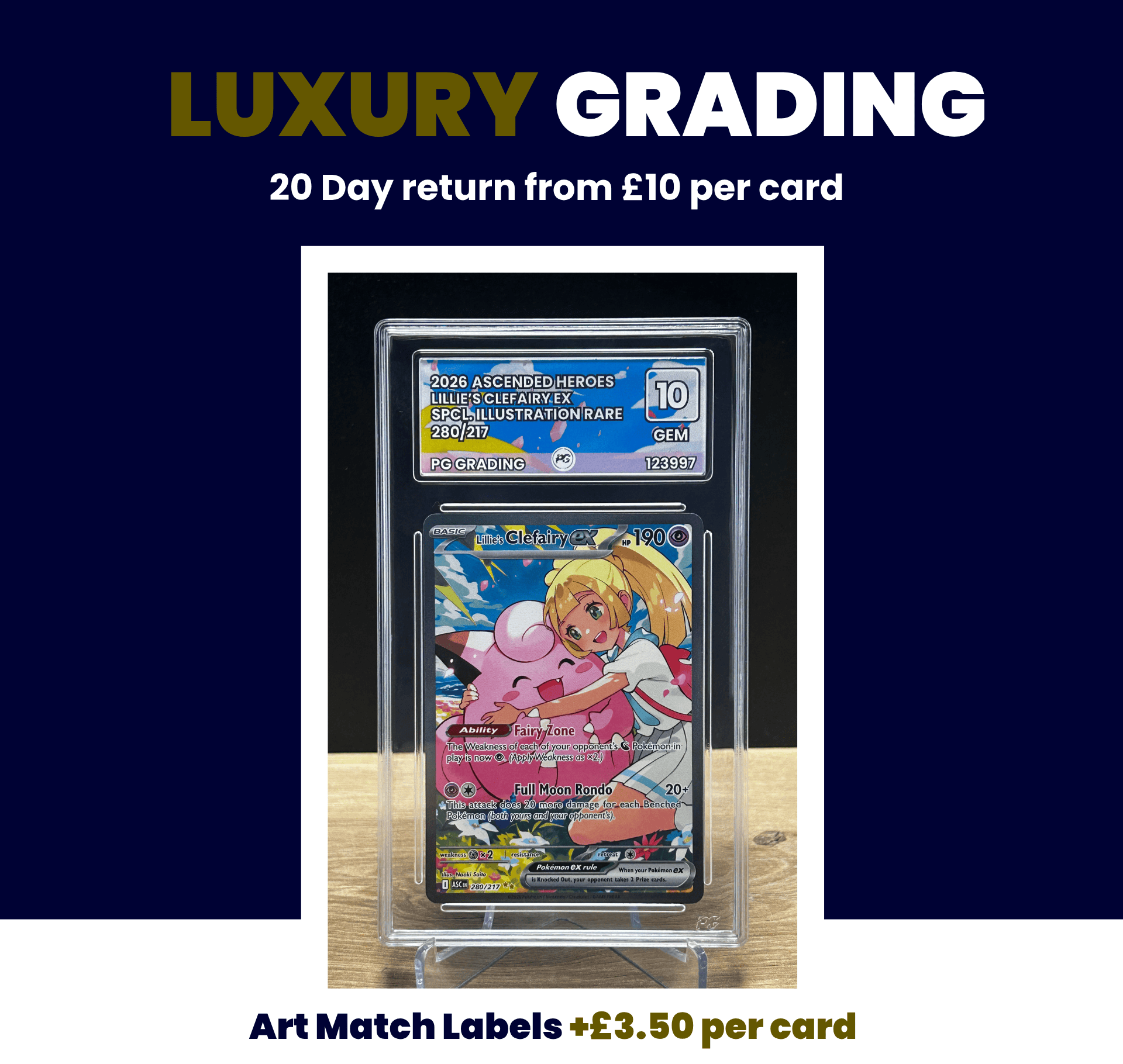 For over 25 years, Pokémon cards have dominated card collecting in the UK. 90% of our current grading efforts are focused on the specialty of authenticating and inspecting Pokémon cards.